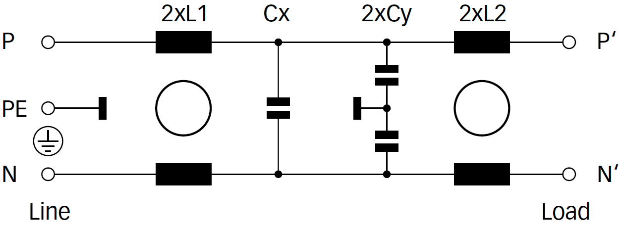 - Very good conducted attenuation performance, based on chokes with high saturation resistance and excellent thermal behavior